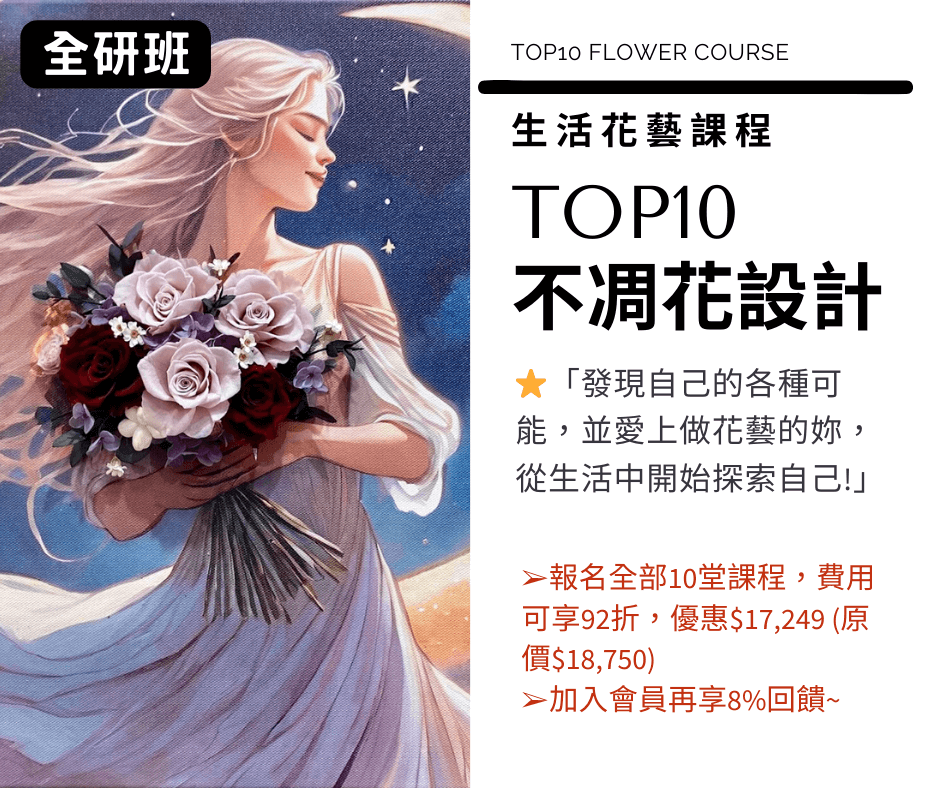 ▶教材/課程皆提供花材、講義、包裝等等,無需自備用具